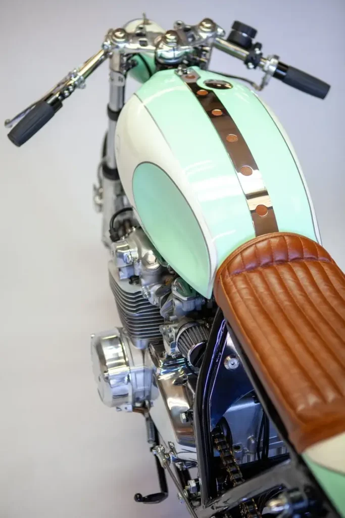 The finished motorcycle feels timeless. The soft tones bring a nostalgic calm, while the metal accents ground the build with strength and precision. It’s elegant without trying to be, balanced without effort. The Honda CB550 Seahawk doesn’t chase attention. It holds it, quietly, the way a well-composed song holds a room.